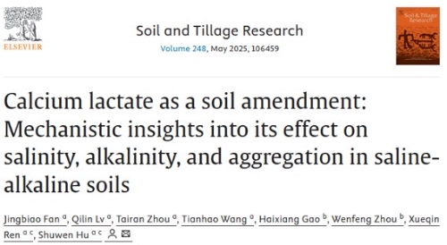 1. fan, j., lv, q., zhou, t., wang, t., gao, h., zhou, w., ren, x., & hu, s. (2025). calcium lactate as a soil amendment: mechanistic insights into its effect on salinity, alkalinity, and aggregation in saline-alkaline soils. soil and tillage research, 248, 106459. https://doi.org/10.1016/j.still.2025.106459